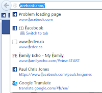 From here, there's no need to type the full web address of things - if I simply type f and hit enter, Firefox knows me well enough to assume I want facebook. If I type h and press enter, it'll take it to hotmail.