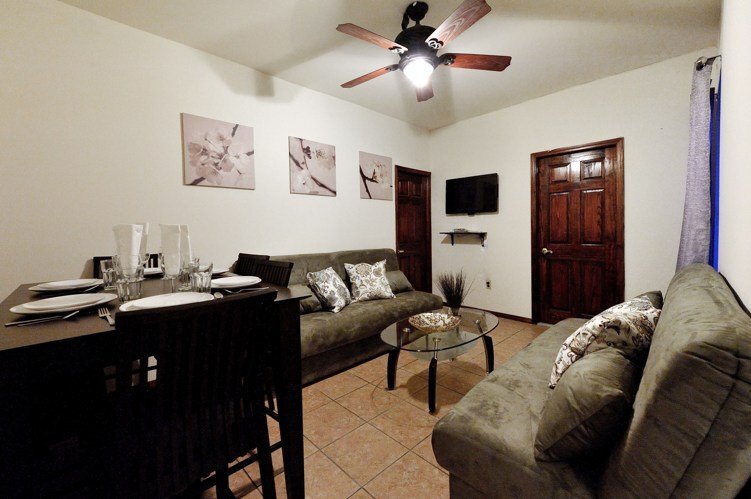 Hi Nicole, It's a modernly furnished and well equipped apt located on 8583 Aero Dr, San Diego, CA 92123 and it is conveniently located within few minutes walk from shops and restaurants. The rent is $1,000.00 PCM (bills inclusive) and a deposit of $600. The apartment is fully furnished is and has a private bathroom so you only need to bring your luggage. I have attached the pictures here so let me know. To book the property.