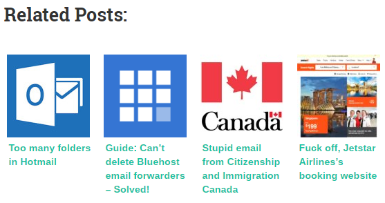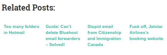 Just now I had a problem with a WordPress plugin called YARPP (Yet Another Related Posts Plugin). The plugin is supposed to show related posts at the bottom of each post, like this: